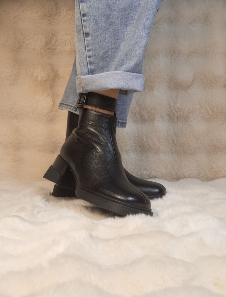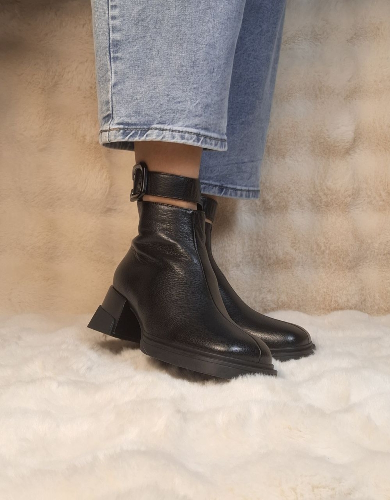 Juodi  odiniai aulinukai su stilinga detale