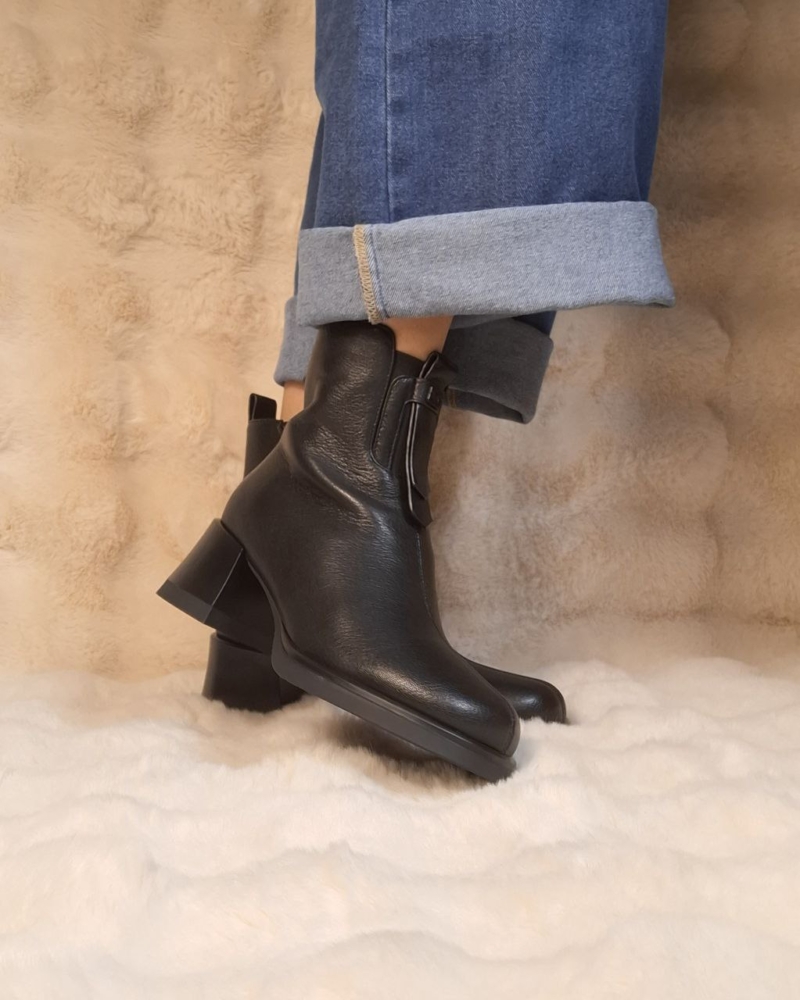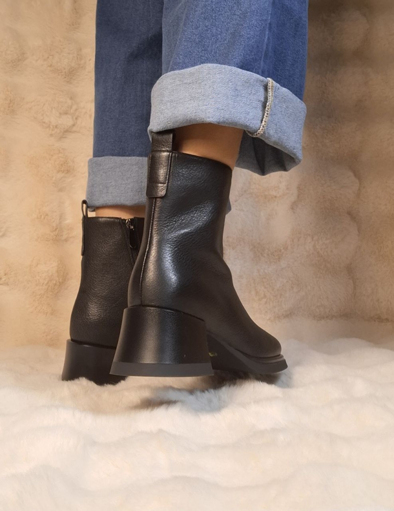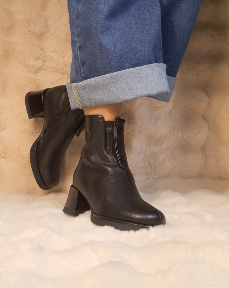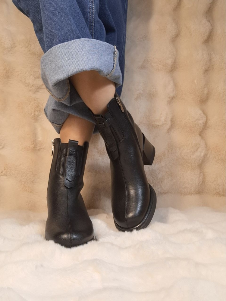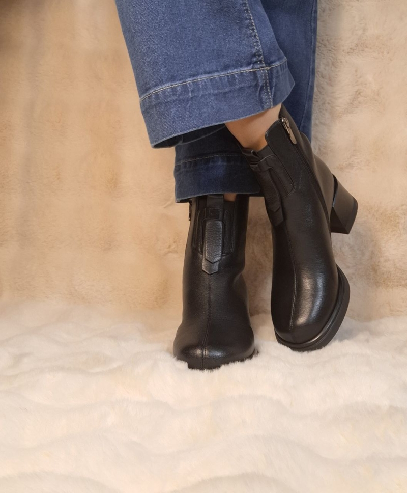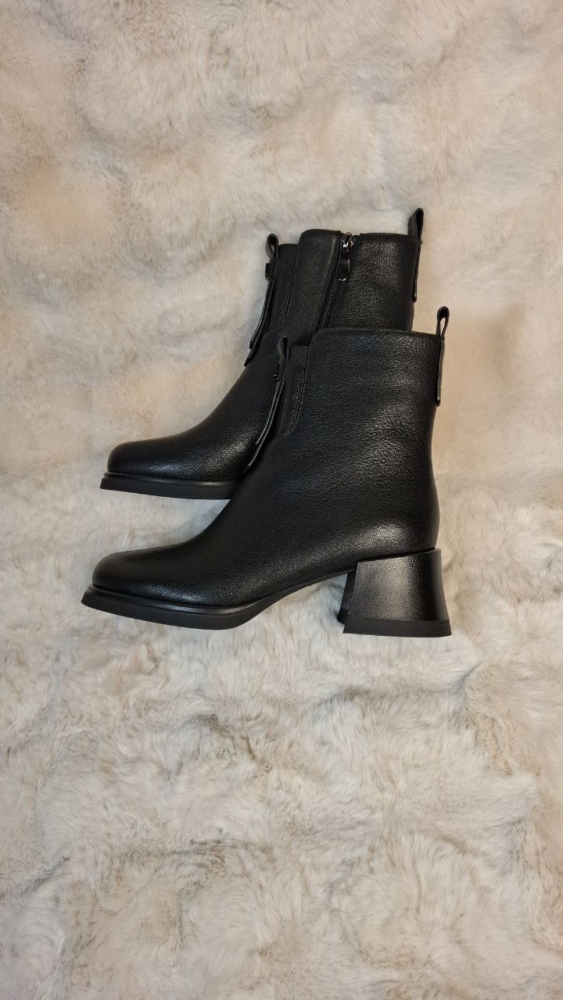 Elegantiški natūralios odos juodi aulinukai su patogiu užtrauktuku šone ir stabiliu kulnu. Universalus modelis, tinkantis tiek kasdienai, tiek prie klasikinės aprangos.