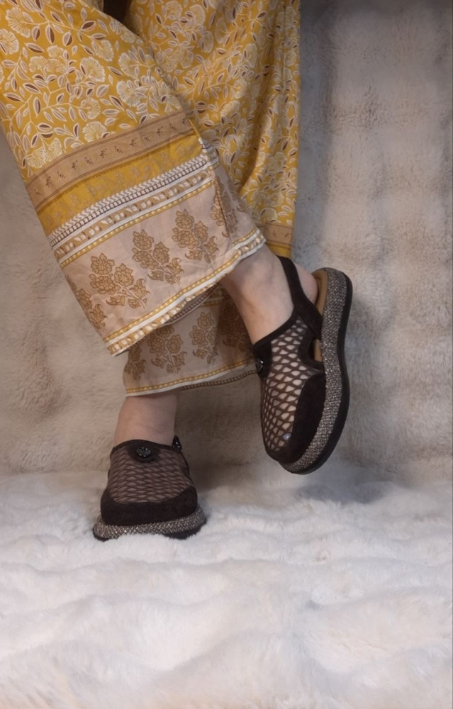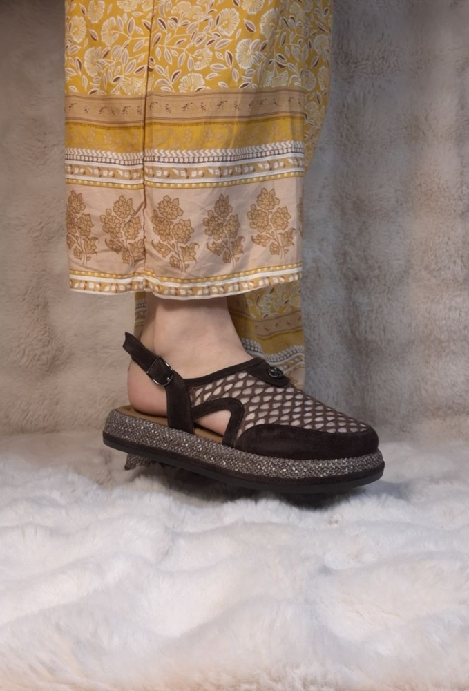 Platforma suteikia žemiško stiliaus pojūtį ir kartu leidžia pėdoms kvėpuoti net karščiausią dieną. Kvėpuojantis tinklelis švelniai apgaubia koją, o reguliuojamas dirželis leidžia prisitaikyti prie tavo pėdos formos.