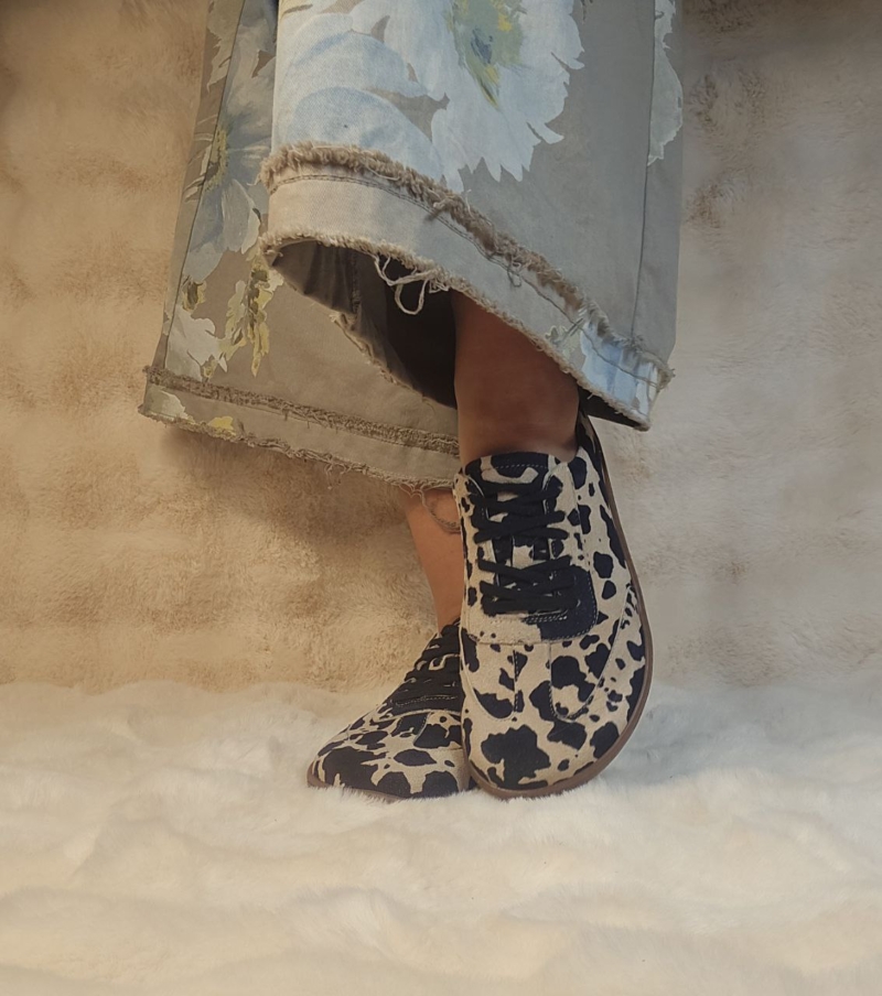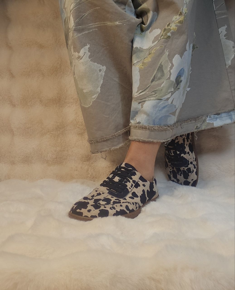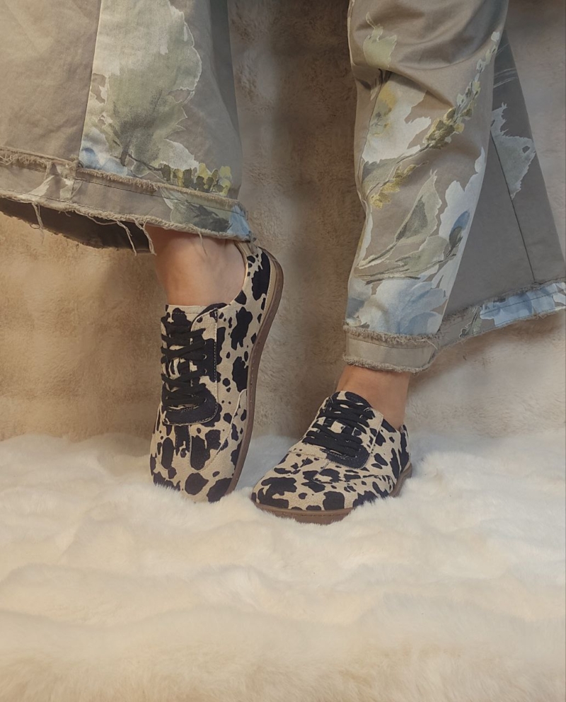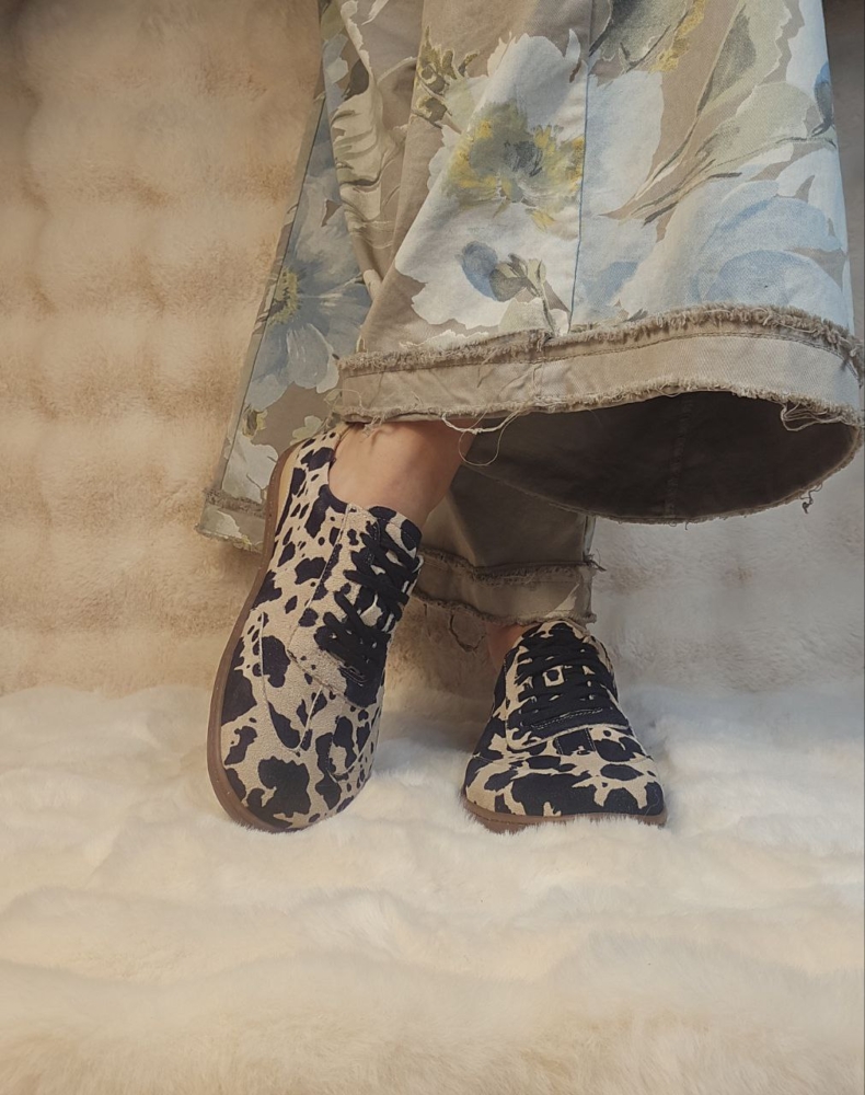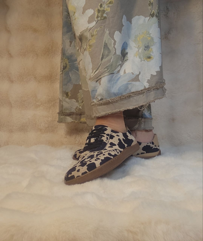Stilingi, stabilūs ir išskirtinio dizaino batai su karvės rašto efektu. Itin patogus modelis su ortopedinio tipo padu – tvirti, stabilūs ir tinkami net jautresnėms pėdoms. Puikus pasirinkimas tiems, kas ieško ne tik stiliaus, bet ir komforto.