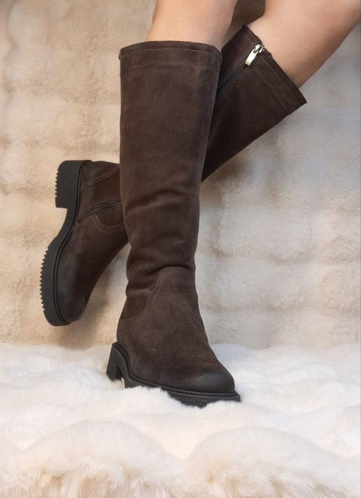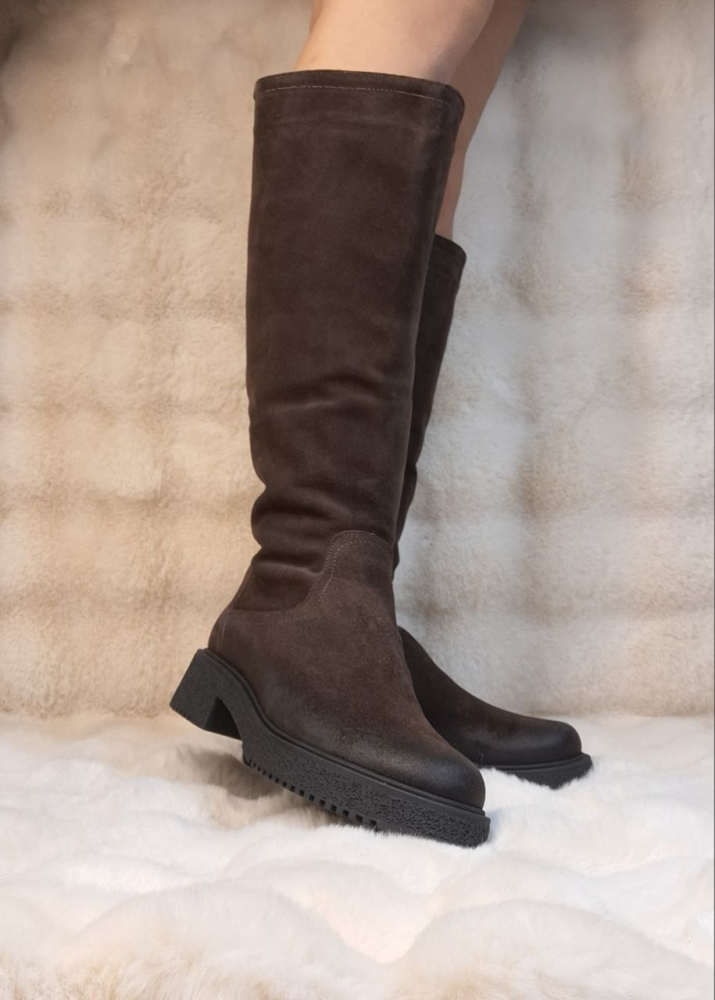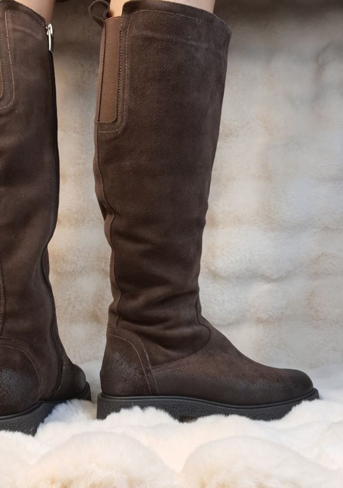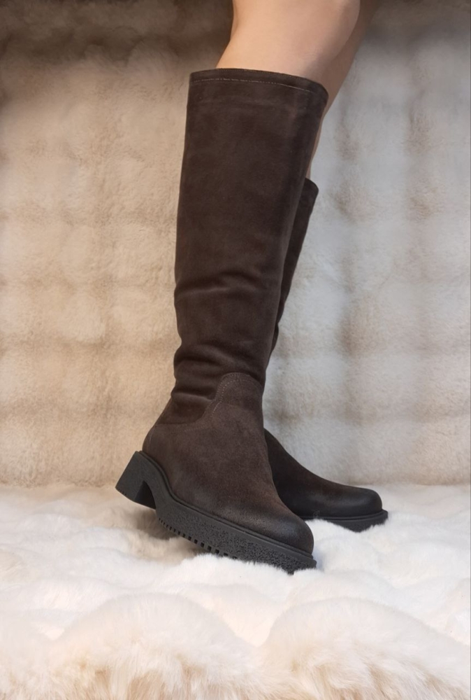 Stilingi natūralios odos tamsiai rudi ilgaauliai. Patogūs ir minkšti.